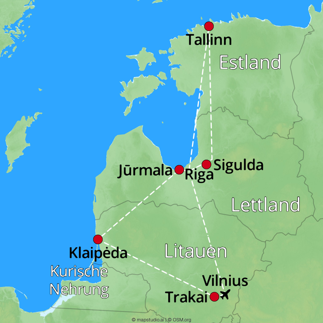 Frühstück. Anschließend lernen Sie bei einer Stadtbesichtigung Vilnius kennen. Die Altstadt wurde 1994 von der UNESCO unter ihren besonderen Schutz gestellt. Ein Zeugnis vielfältiger Architekturstile sind u. a. die Kirchen St. Anna und St.Peter-und-Paul, die St. Stanislaw-Kathedrale, das Tor der Morgenröte, die Gediminas-Burg sowie die alte Universität. Danach Fahrt zur Inselstadt Trakai, die für ihre imposante, gotische Wasserburg berühmt ist. Im historischen Burgmuseum gibt es eine Ausstellung zur Geschichte Litauens und über die heutzutage kleinste Volksgruppe des Landes, die Karäer, die der litauische Großfürst Vytautas im 14. Jahrhundert als Palastwache nach Litauen holen ließ. Weiterfahrt zur letzten Etappe des heutigen Tages, Klaipeda. Abendessen und Übernachtung.